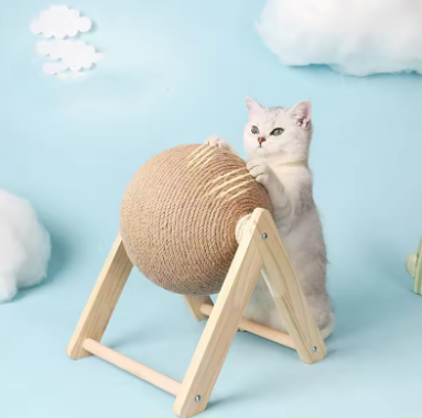 Keep your feline friend active, happy, and away from your furniture! This wooden scratching ball is wrapped in durable sisal rope, giving cats the perfect surface to sharpen their claws, relieve stress, and enjoy endless playtime. Stylish and sturdy, it’s a fun addition to any cat’s play area.